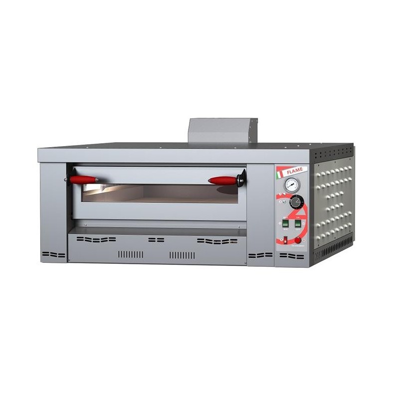 Horno de pizza de gas FLAME 4, con ladrillos de superficie de cocción y temperaturas equilibradas.