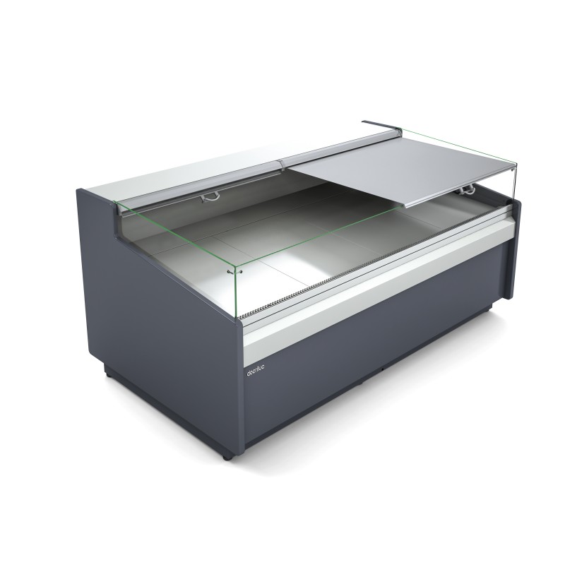 Vitrina combi INTEGRA CO2, con dos módulos: uno superior de acceso trasero y otro inferior autoservicio.