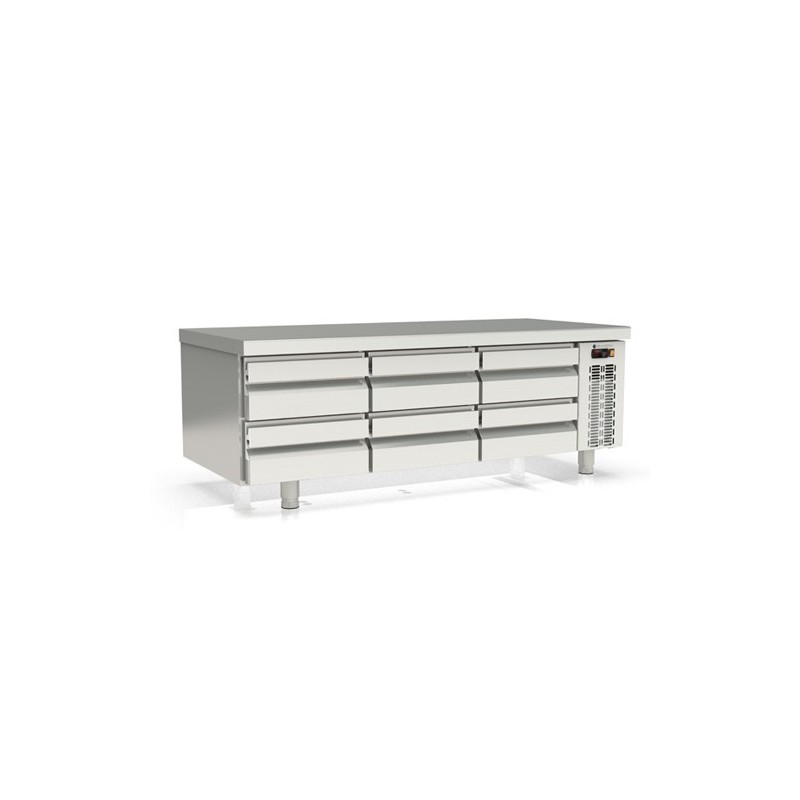 Cajoneras refrigeradas inox desmontables sobre guías inox telescópicas, sistema auto-cierre de serie.