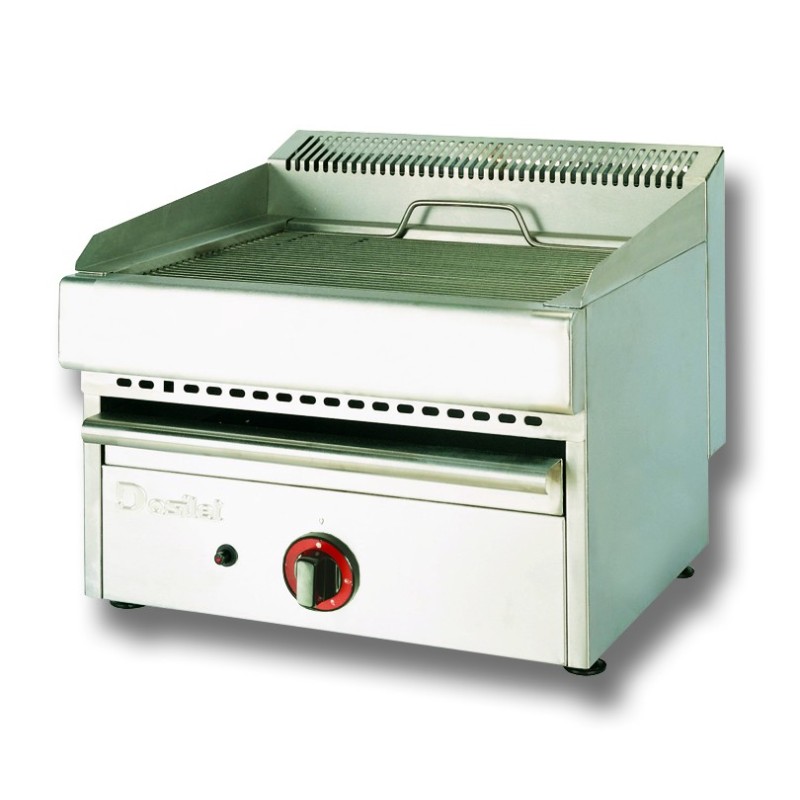 Barbacoa a gas con parrillas de carbón volcánico incombustible y refractario PBI-30, construida totalmente en acero inoxidable.