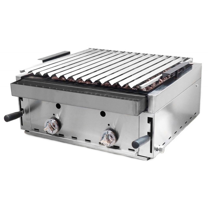 Barbacoa a gas piedra volcánica B-60X sobremesa, fabricado el mueble en acero inoxidable.