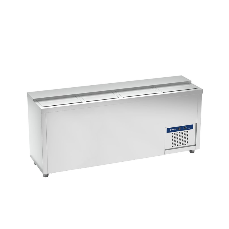 Botellero de fondo plano EFP 1000 EG, construido exterior plastificado en blanco y encimera en acero inox AISI 304.