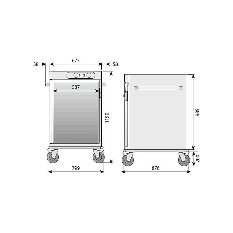 Carro caliente ACR-1 90ºC, construido en acero inoxidable AISI 304 18/10 con doble pared aislada con lana de roca.