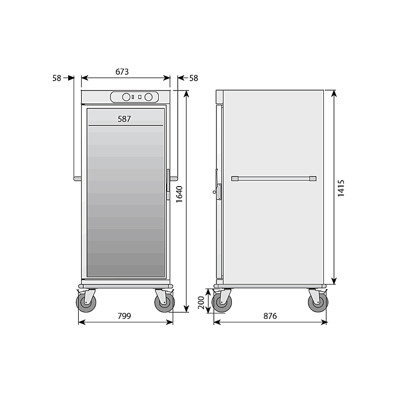 Carro caliente ACR-1 90ºC, construido en acero inoxidable AISI 304 18/10 con doble pared aislada con lana de roca.