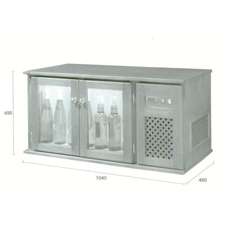 Vinoteca refrigerada CAVA horizontal, fabricado en madera con frontal macizo con acabado inteior en madera de melamina.