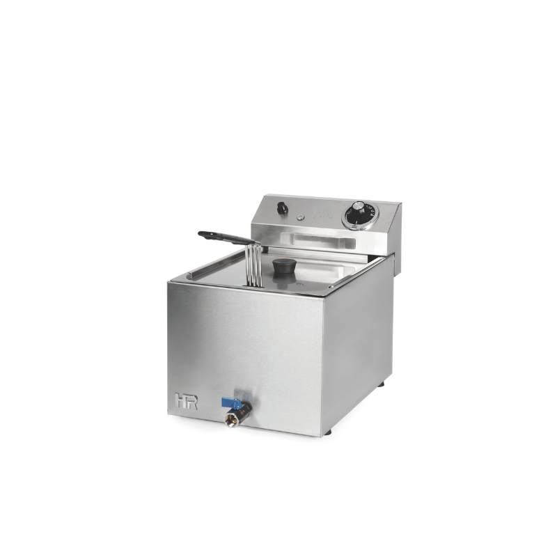 Freidora profesional de sobremesa 10L Serie 600, con termostatos de seguridad, grifo de vaciado y panel de control frontal.