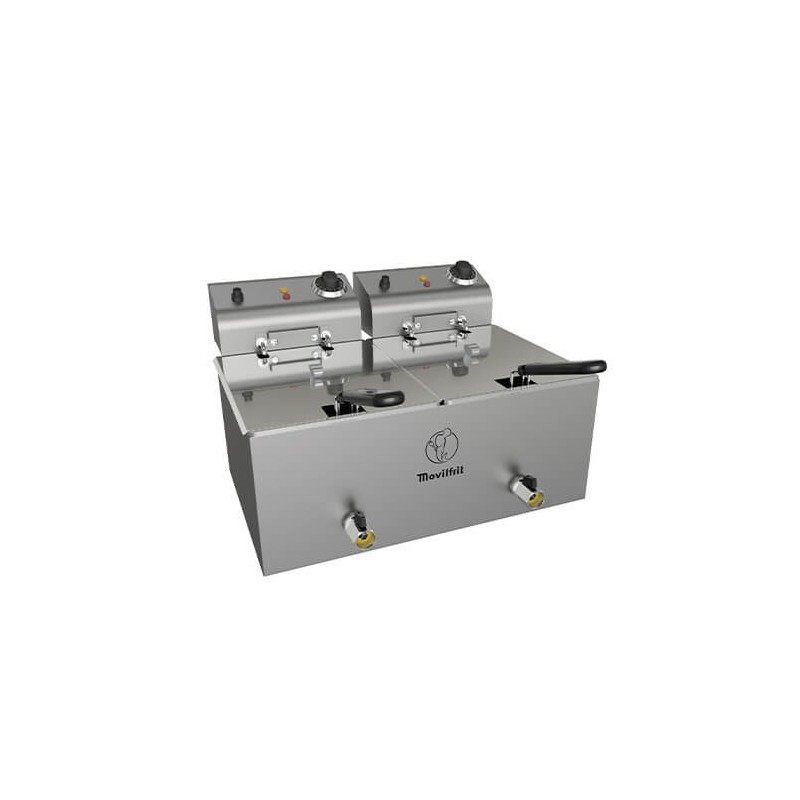 Freidora eléctrica doble con grifo trifásica, de sobremesa sólo aceite.