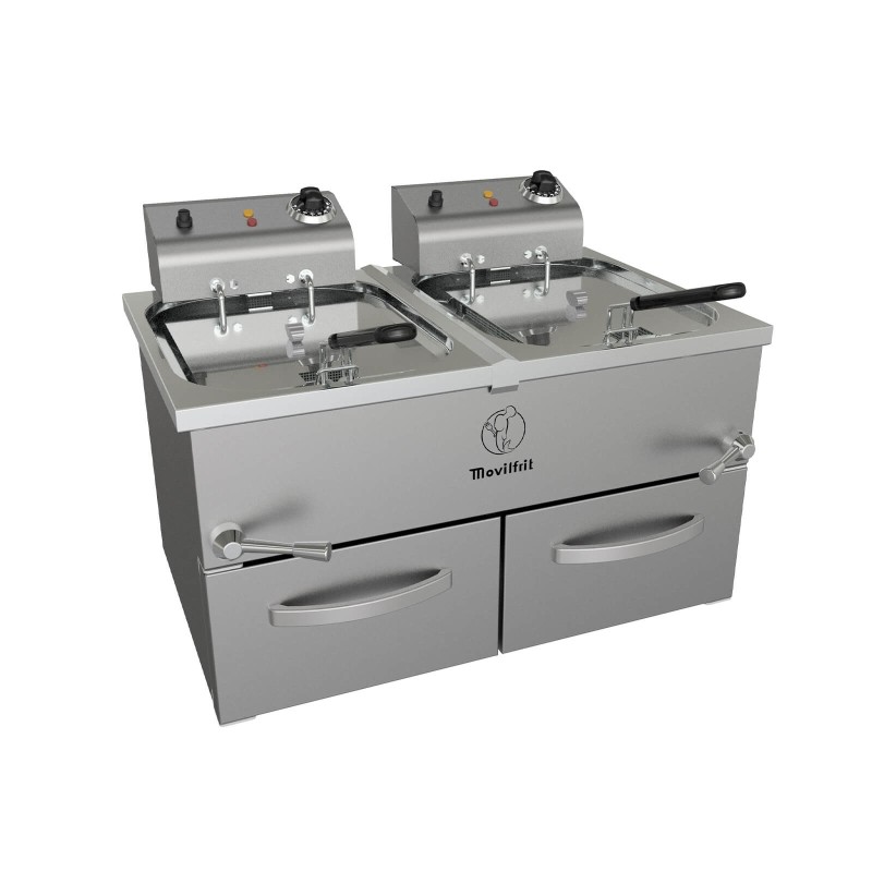 Freidora eléctrica F10+10, construida totalmente en acero inoxidable AISI-340 18/10.