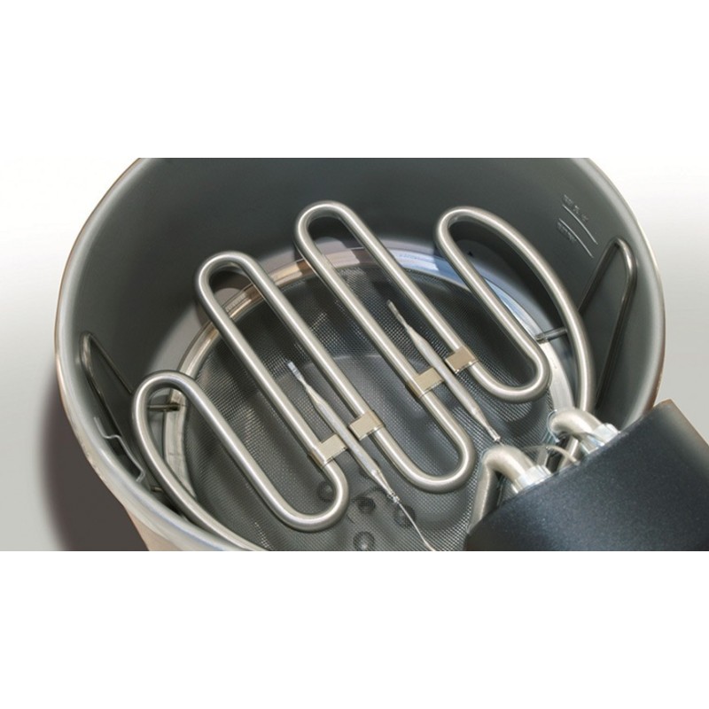 Sistema de elevación de la resistencia para calentar el volumen de aceite necesario para freír.