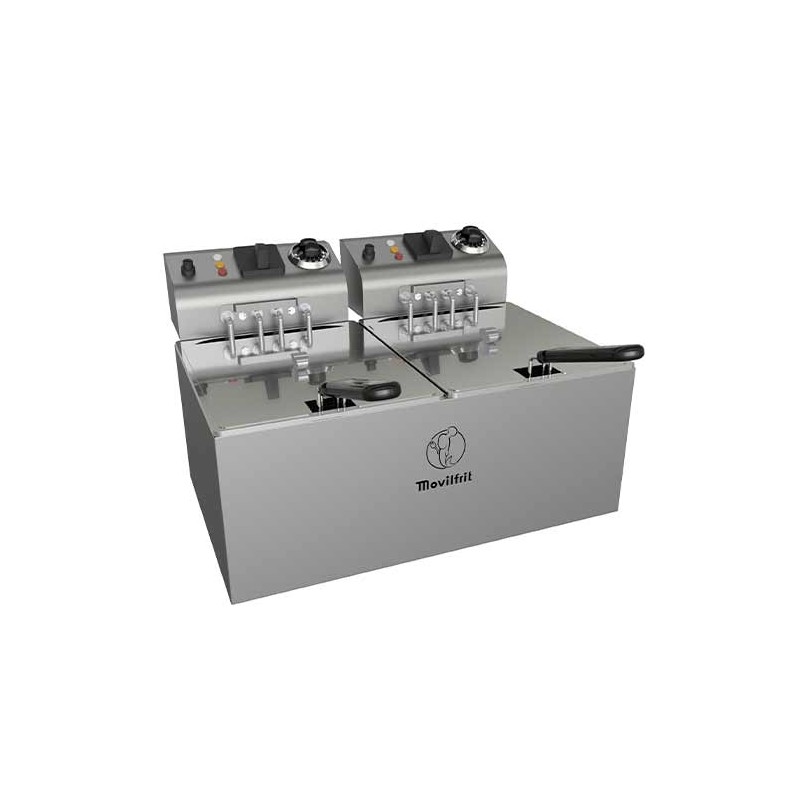 Freidora eléctrica FAH10+10, construida totalmente en acero inoxidable AISI-340 18/10.