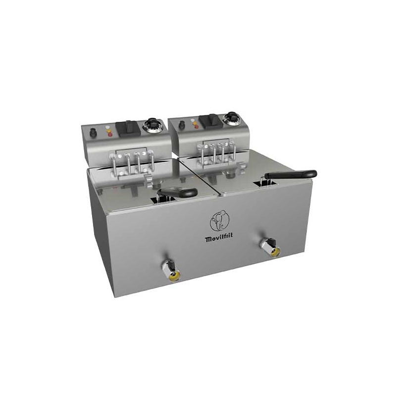 Freidora eléctrica FAH10+10+10, construida totalmente en acero inoxidable AISI-340 18/10.