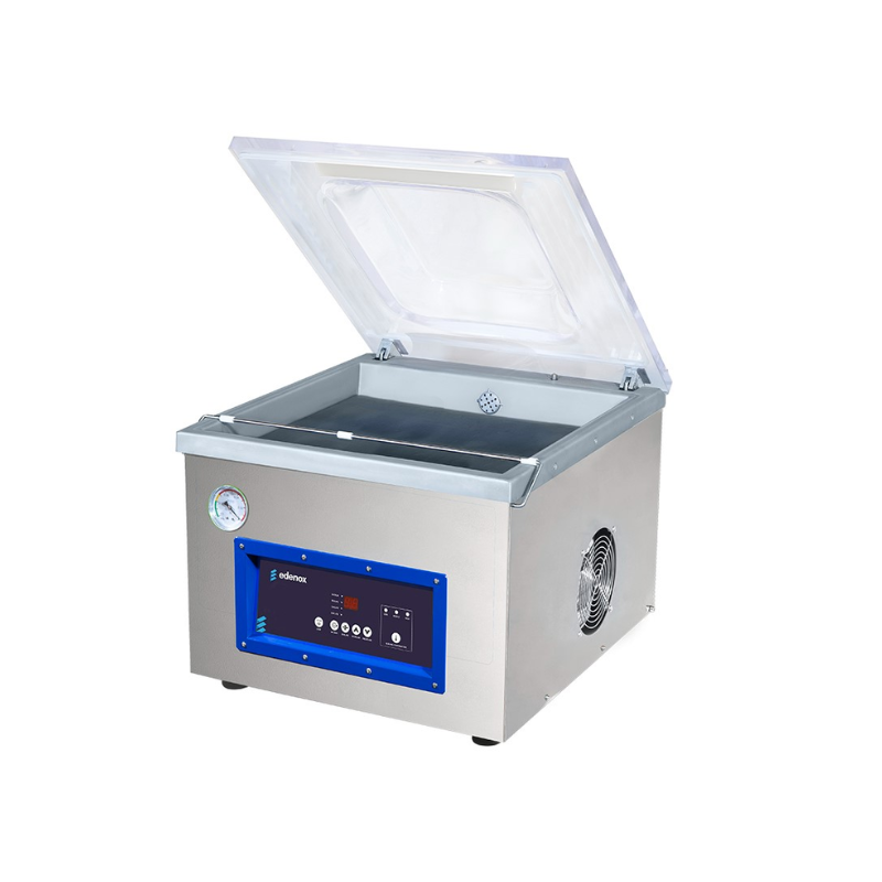 Envasadora al vacío con chasis inclinable para facilitar la manipulación de componentes.