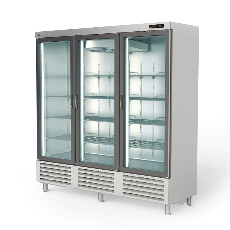 Armario expositor de congelación SNACK, ACCV-2003, fabricado el exterior en acero inox AISI-304, excepto el respaldo y el interior acero inoxidable AISI-304, con aristas curvas y fondo embutido