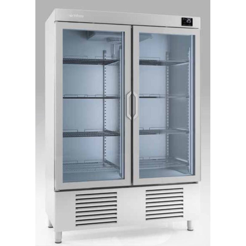 Armario expositor conservación PKSS748-D2KL, con acabados en chapa plastificada blanca con puertas abatibles de cristal termo aislante.