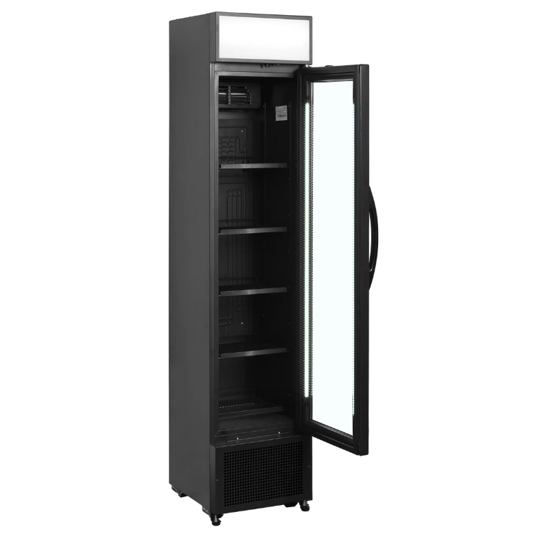 Armario expositor bebidas FSC175H SLIM en color negro con display