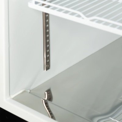 Armario expositor refrigeración CS360B, exterior e interior fabricado en chapa de acero pintado en blanco.