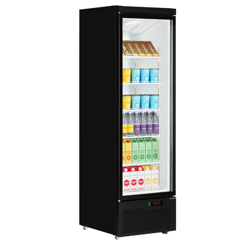 Armario expositor bebidas CEV425 en color negro con apertura a la izquierda