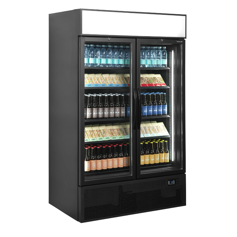 Armario expositor bebidas FSC1200H BLACK en color negro con display