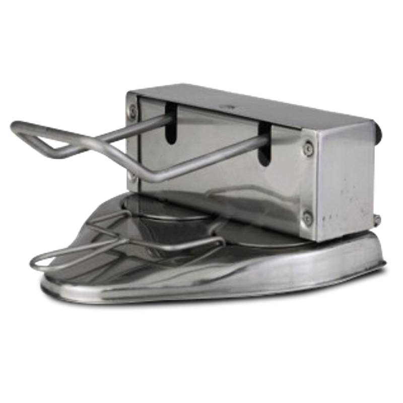 Prensa hamburguesas de sobremesa doble, de molde ovalado, fabricado en acero inoxidable AISI 304L.
