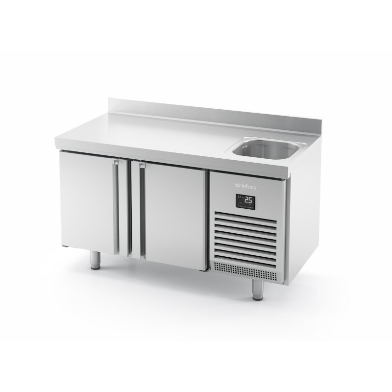 Mesa refrigerada con fregadero, BMPPF 1500 II, fabricado exterior e interior en acero inox AISI 304.