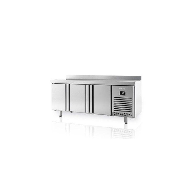 Mesa fría Gastronorm MPG-180HC HHH CAJONES , en acero inoxidable AISI-304 18/10 con acabado satinado, con canto delantero curvo y peto trasero sanitario de 100mm.