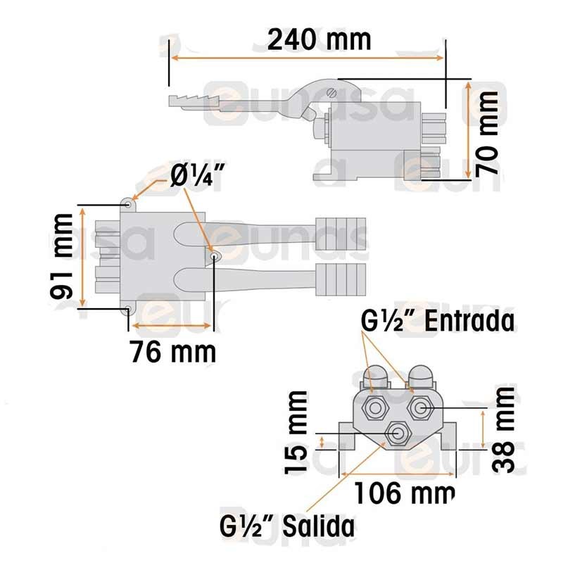Grifo de 1/2" con pedal, de un agua, montaje en suelo con 4 orificios para el agarre.