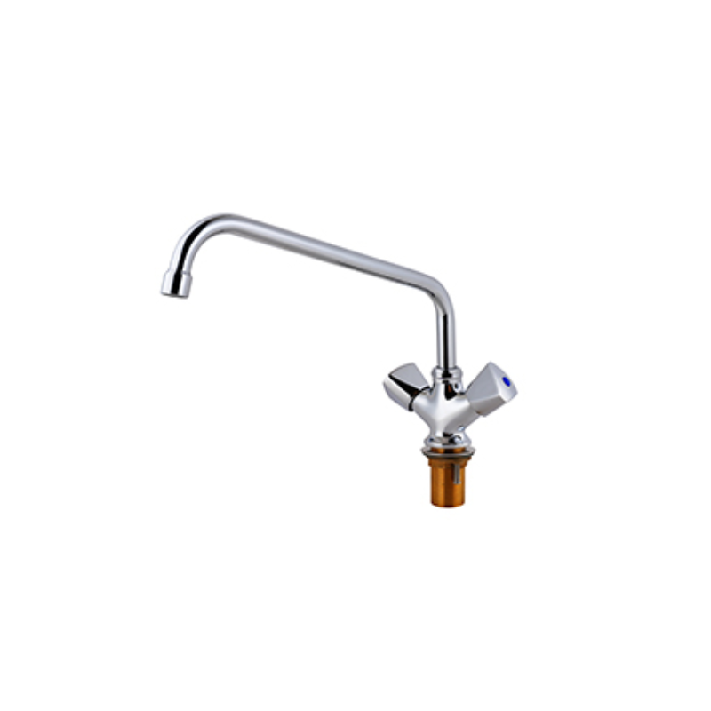 Grifo monobloc de 2 aguas y pomos triangulares. Caño giratorio Ø 20 mm, longitud 300mm