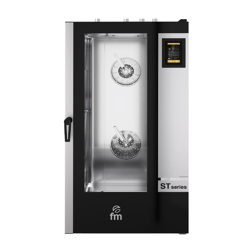 Los hornos de FM serie ST BAKERY están desarrollados para el uso profesional, siempre teniendo en cuenta las necesidades de cada cliente durante la cocción para un acabado excelente.