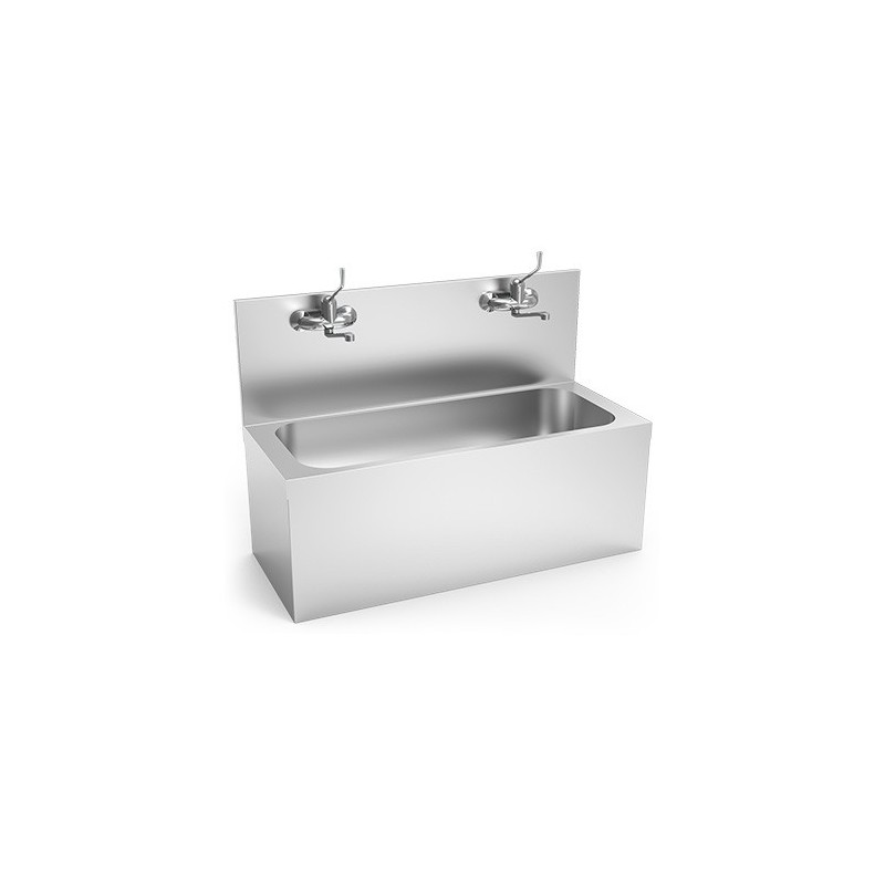 Lavamanos colectivo mural 2 grifos, fabricado en acero inoxidable.