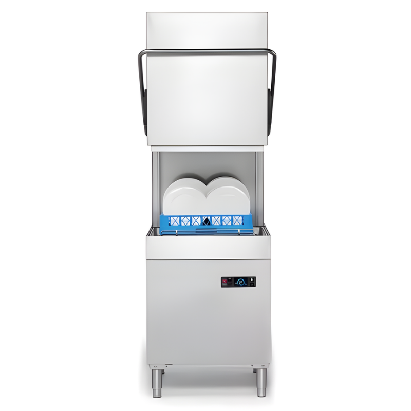 Lavavajillas de capota MISTRAL 94XD, con dosificador detergente peristáltico y construido con doble pared integral.