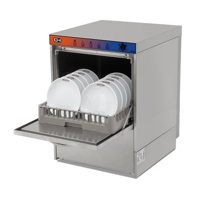 Lavavasos 40x40 CH400ECO-N, la opción ideal para bares, cafeterías y restaurantes que buscan un lavado rápido, eficiente y con bajo consumo. Compacto, silencioso y de gran rendimiento, garantiza vasos siempre limpios y brillantes.