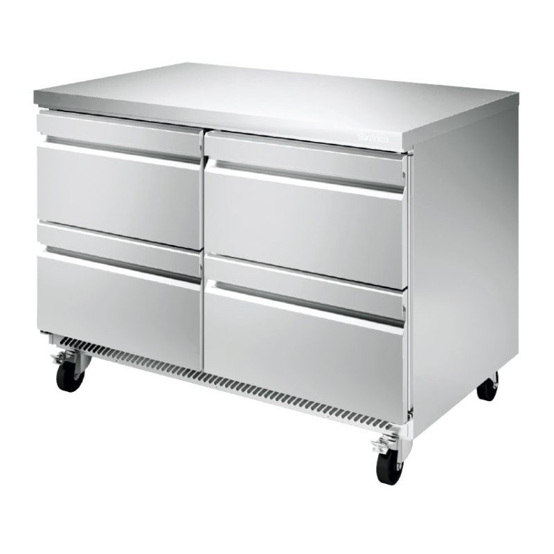 Mesa fría refrigerada con cajones UC 48 4D, fabricada en acero inox AISI-430.