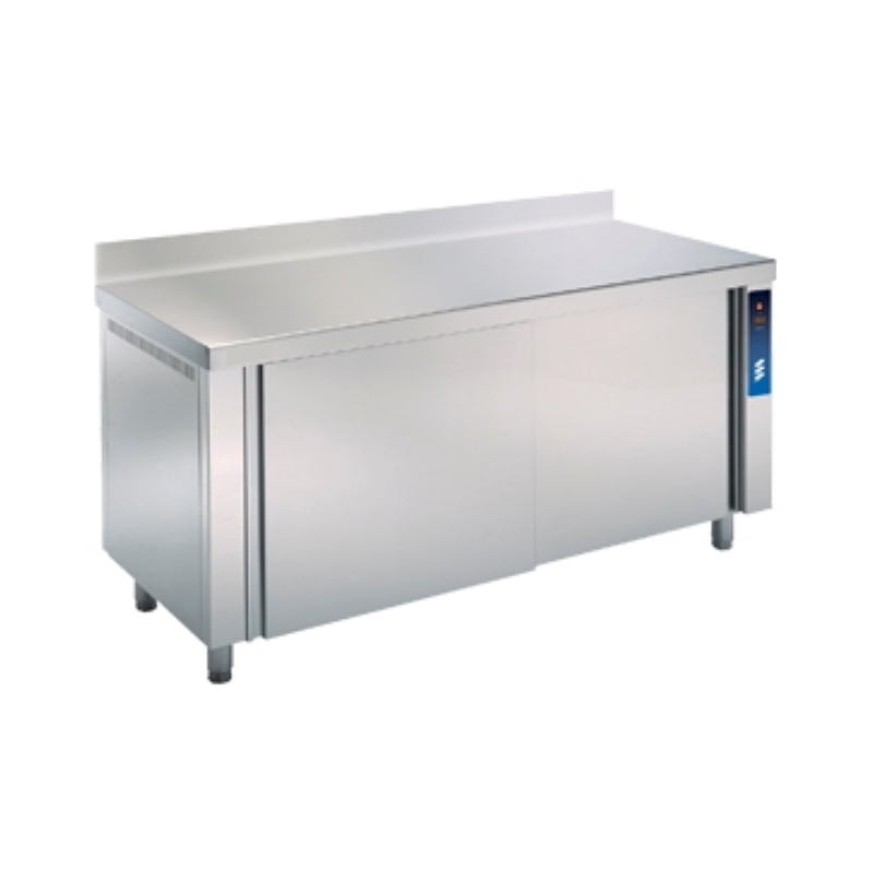 Mesa caliente mural con puertas correderas GAMA 600 ó 700, fabricada en acero inoxidable AISI 304 18/10.