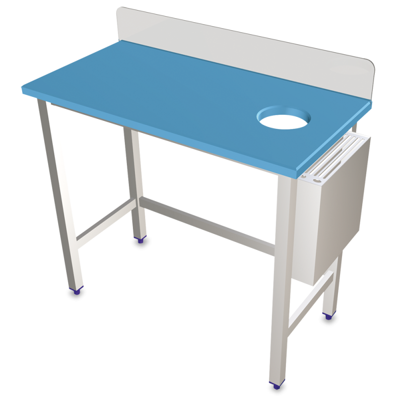 Mesa de preparación y lavado, construida con acero inoxidable.