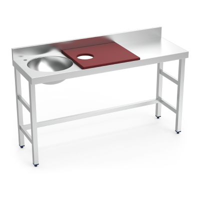 Mesa de preparación y lavado, construida con acero inoxidable.