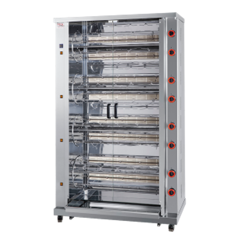 Asador multirotativo para pollos 8MR, consumo económico. Asado perfecto y uniforme dorado del pollo al máximo.
