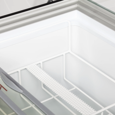 Vitrina de heladería con tapas de cristal deslizantes IC401SC+SO que permiten un fácil acceso