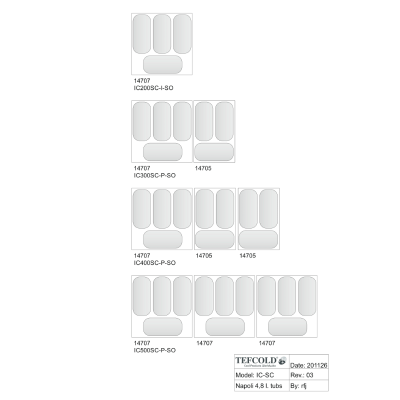 Vitrina expositora para helados, VCB 18 UH, construida con una encimera de trabajo en compac quartz blanca.
