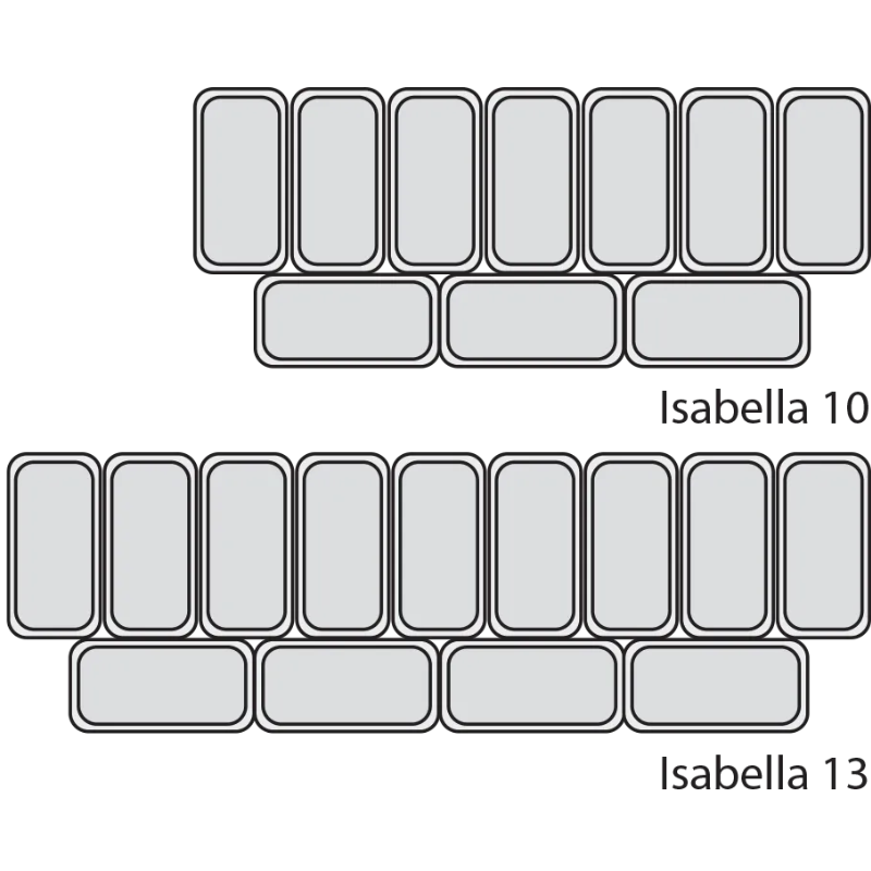 Vitrina de heladería Isabella con tapas curvada 13LX perfecto para mostrar helados con la mejor iluminación