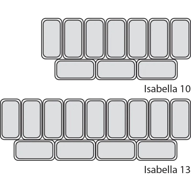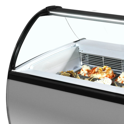 Vitrina de heladería Isabella con tapas curvada 13LX perfecto para mostrar helados con la mejor iluminación