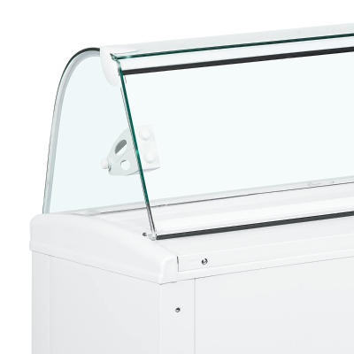 Vitrina de heladería con tapas de cristal deslizantes IC501SCE+SO que permiten un fácil acceso