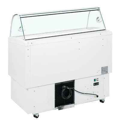 Vitrina para heladería con encimera/frontal de cristal curvado FIJI 4 perfecto para espacios pequeños al ser tan compacto