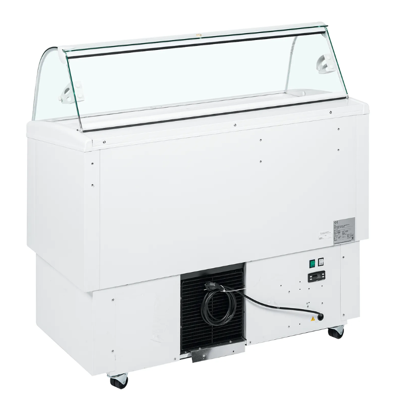Vitrina para heladería con frontal de cristal curvado BERMUDA RV13 perfecto para exponer diferentes helados