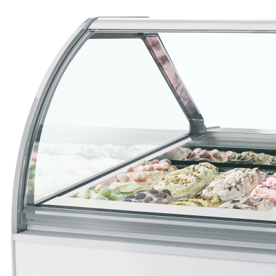Vitrina para heladería con frontal de cristal curvado MILLENNIUM LX18 perfecto para exponer los diferentes helados