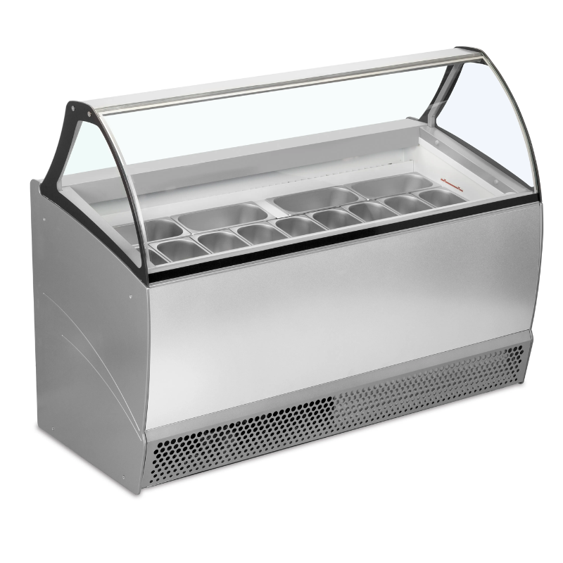 Vitrina para heladería con frontal de cristal curvado MILLENNIUM LX16 perfecto para exponer los diferentes helados