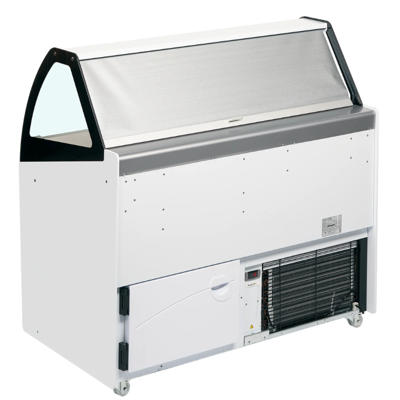 Vitrina de heladería con tapas de cristal deslizantes IC501SCE+SO que permiten un fácil acceso