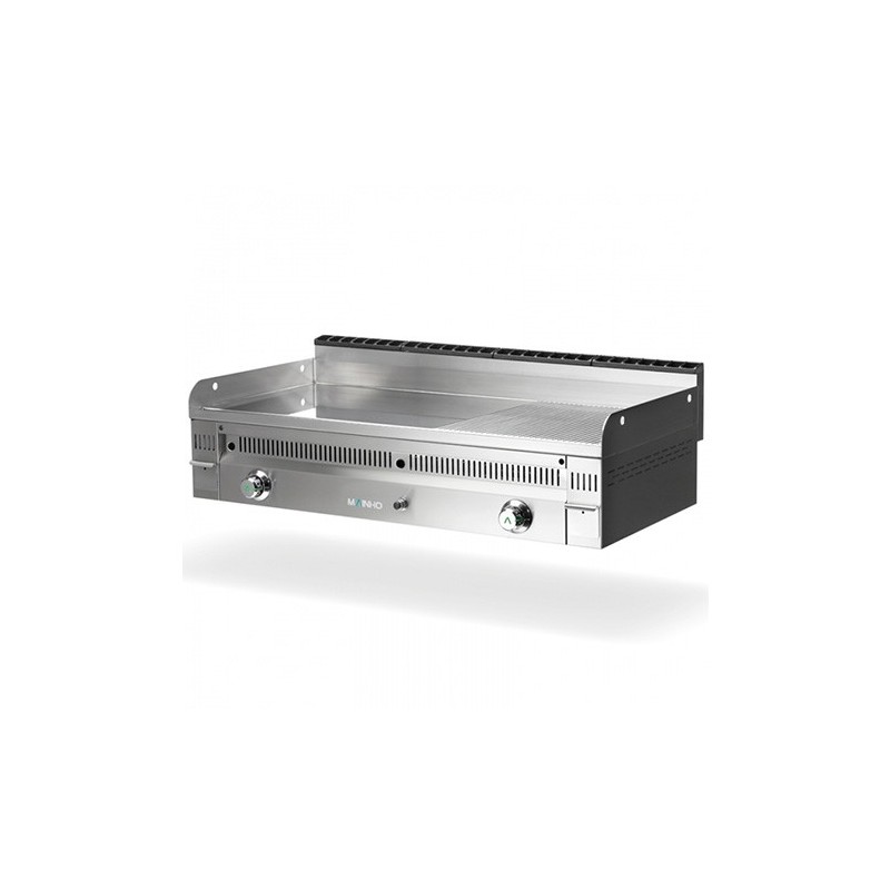 Plancha a gas de placa semi-ranurada en acero rectificado de 15mm de espesor.