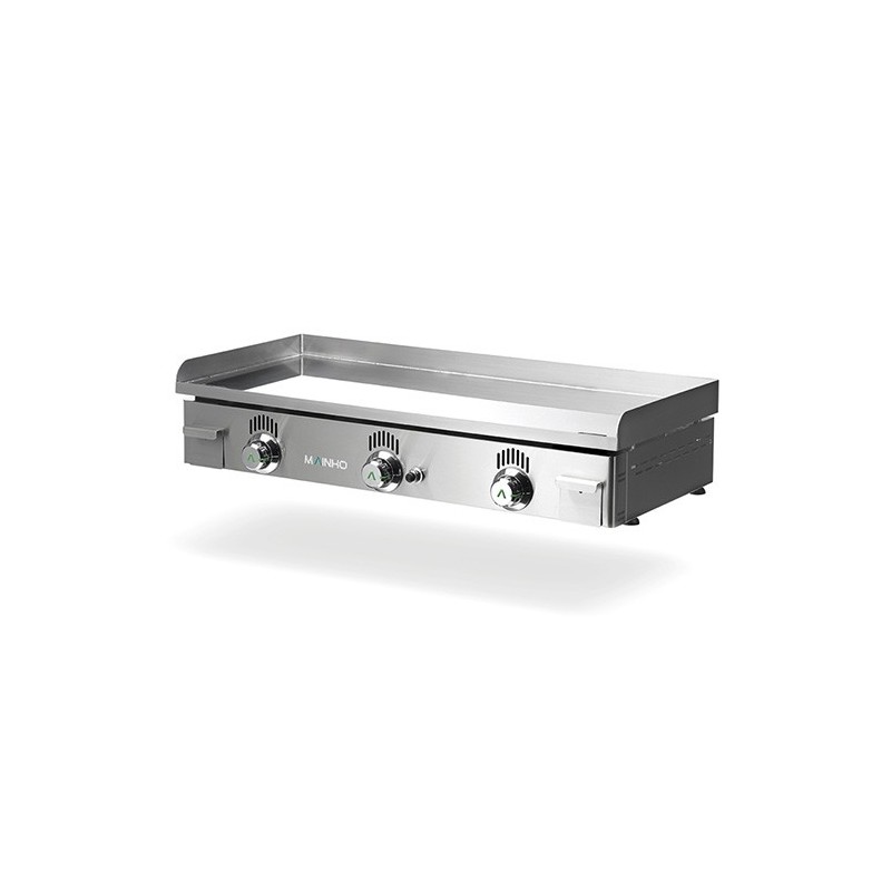 Plancha a gas, con placa de acero pavonado en negro de 8mm de espesor.