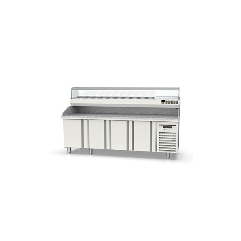 Mesa refrigerada para pizza serie 800, MP 1740, fabricado exterior e interior en acero inox AISI 304.