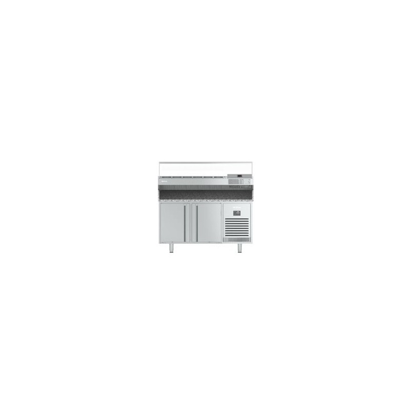 Mesa fría GN 1/1 PIZZA serie 700, con nueva línea en diseño, robustez y fiabilidad, manteniendo la misma capacidad y cumpliendo con los altos estándares de calidad, con estructura compacta totalmente inyectada.